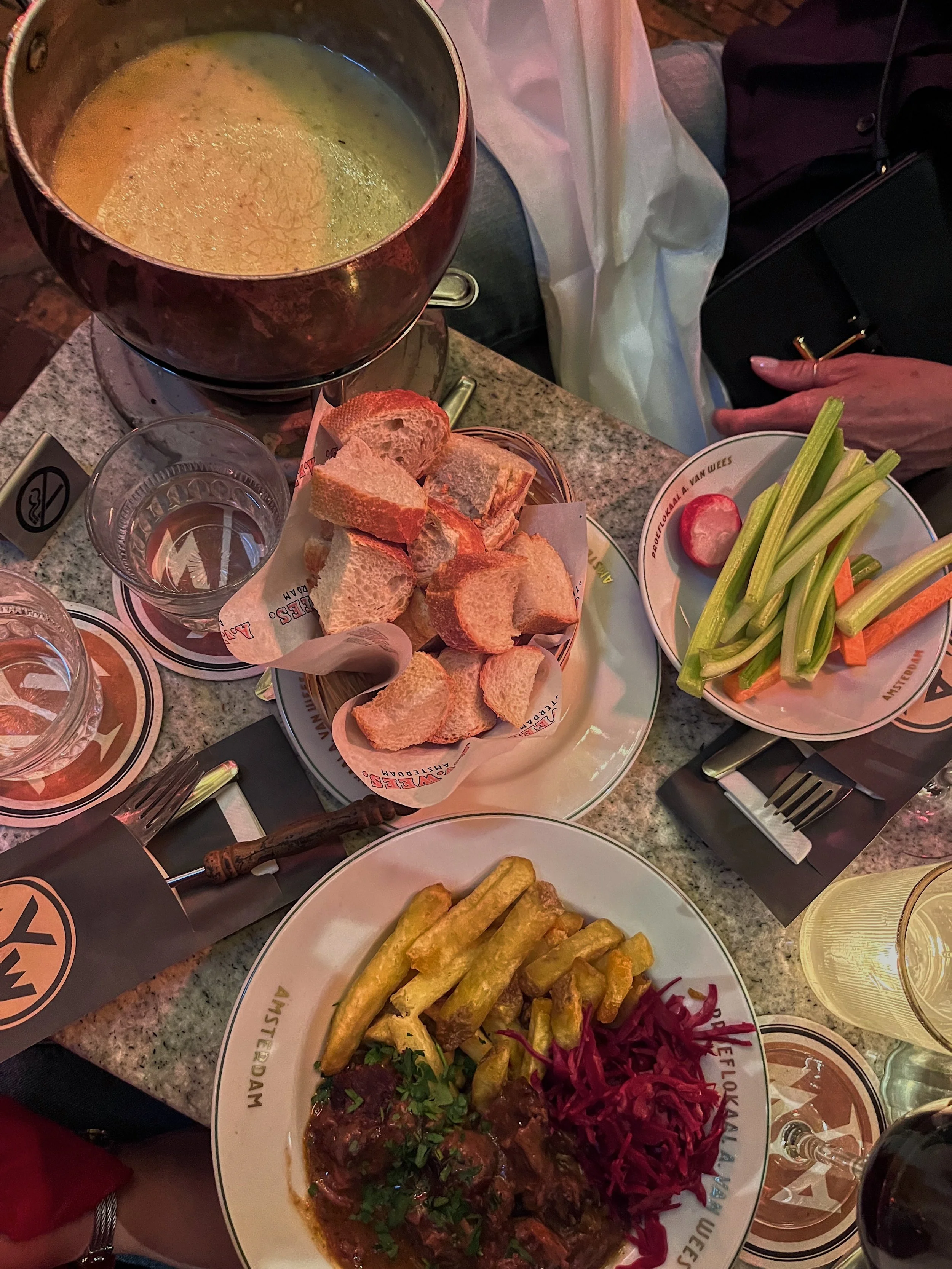 This local restaurant is absolutely worth securing a reservation for. While the Netherlands doesn’t have a signature national cuisine, this spot serves all the classic Dutch staples. I recommend the bitterballen (though I’ll admit the ones at our hotel were even better), the beef stew, and, of course, a beer. Prices are reasonable, the outdoor seating has a great atmosphere, and the location right along the canal is perfect.